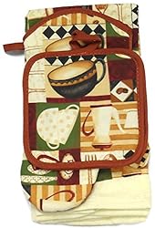 Kitchen Towel Set 7 Piece Towels Pot Holders Oven Mitt & Dishcloth Decorative Design Everyday Use (7 Piece, Spring Cafe) Check Price Now