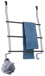 The mDesign Over-the-Shower Door Towel Rack features classic styling for your home. It has three bars for storage and fits over the shower or bathroom door for easy installation with no tools required.