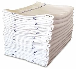 • Highly absorbent, fast drying, and produce minimal lint. • Classic white towels with blue stripes. • Strongly sewn edges and herringbone weave ensure durability. • Perfect use in every family, restaurant and hotel kitchens. • Great size for many types of use in the kitchen, like drying fruits, covering of bread dough, grabbing of hot items, etc.Washing and Care Instructions
