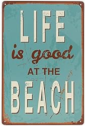 NI414 Life is Good at the Beach Tin Sign | 12-Inch By 8-Inch Check Price Now