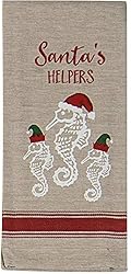 Santas Helpers Seahorses in Santa Hats Holiday Chambray Kitchen Tea Towel