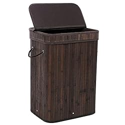Price :$31.99 Product DescriptionThe Songmics Bamboo Laundry Hamper is a great method for organizing laundry mess and other trivial stuffs. It simplifies your house working and keeps your home environment clean and tidy. Crafted from Natural Bamboo and colored by classic Dark Brown, it impressively enhances the stylish feeling of your home dรฉcor. The thickened lid and strengthened bottom makes the whole constructure sturdier and more stable. Also the simple design makes it easy to be assembled and space-saving when folded flat. Specifications: - Body & Lid Material: Natural Bamboo - Color: Dark Brown - Product Dimensions: 15 3/4" x 11 3/4" x 23 5/8"(40 x 30 x 60cm) - Product Weight: 4.38lbs(1.98kg) Shipping List: - 1 x Bamboo Body - 1 x Bamboo Lid - 1 x Liner Bag - 2 x Metal Frame - 1 x Bottom Board How to Assemble? 1. Unfold the bamboo hamper into a rectangle shape with leather handles centers in two narrow sides; 2. Insert the panel into the bottom of the hamper. Keep the pull-loop upwards so that you can take it out easily, and the rope net will hold it at the bottom; 3. Insert the metal frame into the hamper and lock it with the 4 leather buckles; 4. Put the liner bag into the hamper and folds the extra parts over the basket, make a bowknot or simply fasten it as you like; 5. Put on the lid. Finish and Enjoy! Friendly Reminder: - Please put the long side of the lid on hamper firstly and press the other long side for easier assembly; - Please do not store damp clothes and towels in it and keep it away from wet floor, or it might cause mildew or damage to the bottom board; - It can be wiped clean with a damp cloth. - Eco-Friendly Bamboo: Made of natural bamboo material, the laundry basket is super stylish, elegant and durable. Also the dark brown color matches well with your house decoration