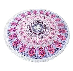 Cinlan Bohemian Style Printing Round Cotton Terry Tassel Beach Towel (Pink) Check Price Now |