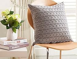 CottonTex Cotton Knitted Decorative Cushion Cover(17.5*17.5") + Pillow(19.5*19.5") Double-Cable Knitting Patterns, Deep Grey, Cover + Pillow Check Price Now |