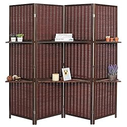 Price :$129.99 Product DescriptionBring simple, elegant style and beautiful display space to your home with this combination room divider and customized shelf space. Made of woven bamboo, this decorative folding screen includes 2 sturdy wooden boards that cleverly slip through the panels to create instant shelves to store and display a variety of items, from treasured keepsakes to potted plants. This freestanding folding screen can also be used as home decor accent that can help change the shape of a space or block off parts of a room as need. For a stylish display space and room divider in one, this 4-panel bamboo screen with shelves is the perfect choice. **Official MyGiftยฎ product includes multipurpose cleaning towel.** Approximate Dimensions (in inches): 19.75 W (each panel) x 70.75 H x 0.75 D. - A beautiful and portable combination room divider screen and shelving system made of brown bamboo.