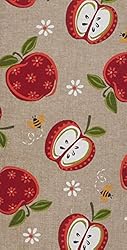 Price :$8.71 Product DescriptionThis tea towel features vibrantly printed apples, honeybees, and floral on Chambray cotton, giving it an organic, burlap like look. Cotton tea towels are great for drying dishes, but other popular uses are to turn them into Cafe curtains, use them on a countertop as a dish drying mat, or to keep baked goods warm before serving. Loop for displaying when not in use, or hang over a stove handle to add interest to your kitchen! wash before use for best results. Kay Dee Designs has been selling quality textiles for a well-dressed kitchen since 1951. - Apples, honeybees, and Floral printed on a chambray tea towel