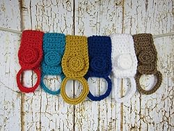 This listing is for one crochet towel holder for hanging your dishtowel or handtowel. Ready to Ship. Pick you Color: Royal Blue White Gold Cafe Latte Red Turquoise These towel holders can hang on stove handle, refrigerator handle, door knobs, drawer knobs or dishwasher, etc. No more towels falling on floor. Measurements: 5" Long when buttoned closed, 9" when opened and extended. Made with acrylic yarn. Handmade in USA by me (Pamela) Please email me with any questions.