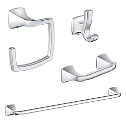 Price :$165.47 Product DescriptionAs the #1 faucet brand in north america, Moen offers a diverse selection of thoughtfully designed kitchen and bath faucets, showerheads, accessories, bath safety products and kitchen sinks for residential and commercial applications each delivering the best possible combination of meaningful innovation, useful features, and lasting value. - Kit includes double robe hook, toilet paper holder, 24-in towel bar, towel ring