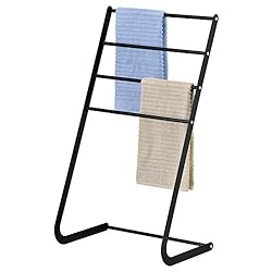 Price :$24.99 Product DescriptionOrganize and display your collection of hand towels and washcloths in style with this freestanding towel rack. Made of sturdy metal with a classic black finish, this standalone rack comes with 4 horizontal bars that are ideal for holding and air drying your collection of small towels. Place this rack in your bathroom or laundry room for a convenient way to hang and dry towels or clothing. **Official MyGiftยฎ product.** Approximate Dimensions (in inches): 18 W X 32.25 H X 12.5 D. - A freestanding towel rack made of metal with a classic black finish.